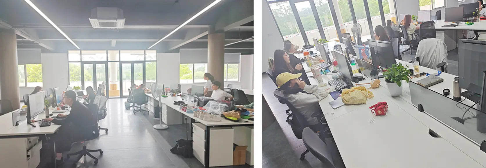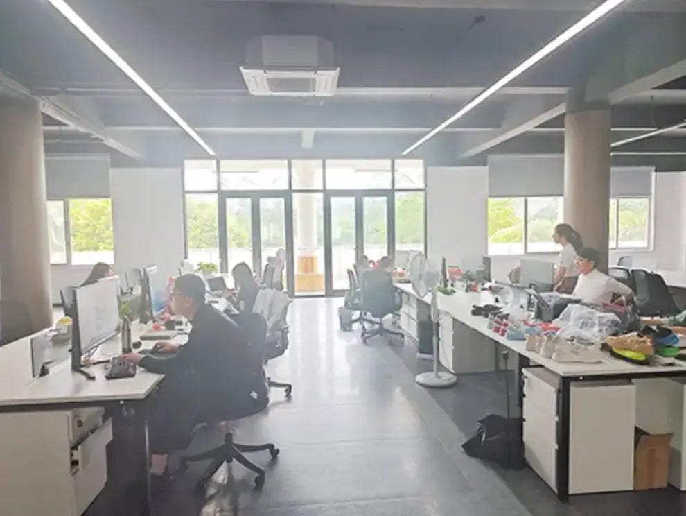 Entering the company, what catches the eye is the moder office space that has been meticuousy renovated in 2024. The decorationadopts environmentally friendly and textured materials, and the simpleand fashionable stvle creates a comfortable and efficient atmosohereReasonable planing of open and independent office areas not only facitates team colaboration, but also ensures personal focus space, easilaccommodating dozens of peole without crowding. The sampe room adjacent to the office area is a highight, using professional lighting design toaccurately focus on every par of displayed shoe sampes, from casual to busness styles, with exquisite design and excelent qualty. Guests canenter and visit at any time, experiencing the unique charm of the company's products in all directions and up close.